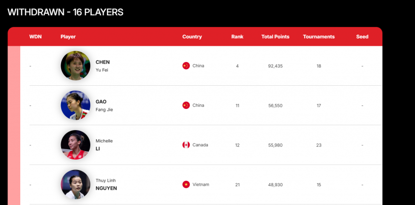 Before the Lunar New Year 2026, Thùy Linh unexpectedly did not appear on the list of participants for this year's German Open. Her name was among those who withdrew, alongside Chen Yufei, Gao Fangjie, Michelle Li, Nozomi Okuhara, Pitchamon Opatniputh, and others.