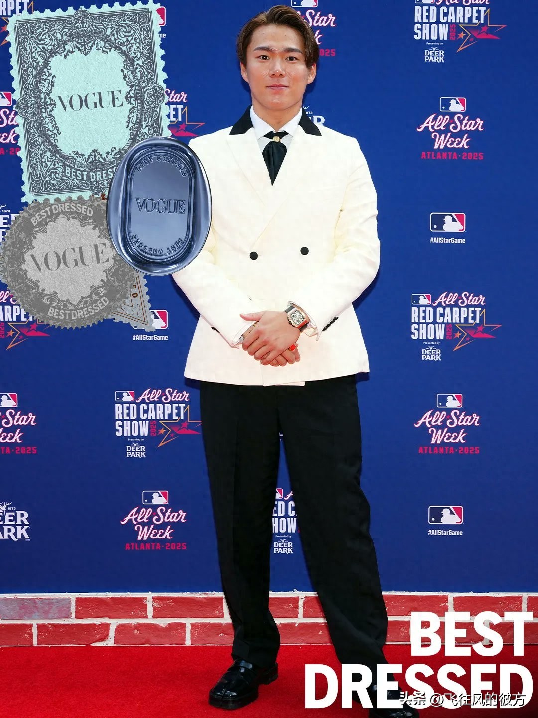 This year marks Yamamoto’s first selection to the MLB All-Star Game. At the pre-game red carpet event, he appeared in a simple yet striking look featuring a white blazer paired with black trousers. His sharp and commanding style captured the attention of the fashion world. Vogue highlighted that his entire ensemble conveyed elegance and a distinct personal flair, leaving a strong impression.