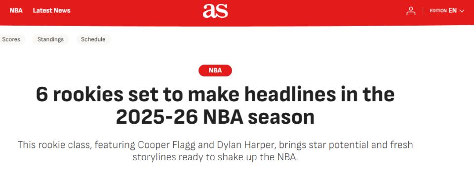 On October 17 Beijing time, Spanish media "AS" chose 6 rookies worth watching for the upcoming season, including Chinese player Han-Sen Yang. Here are their brief reviews and forecasts for these 6 rookies —