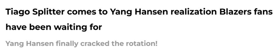 Just like the disappointing 1-4 road trip earlier, the Blazers have been hampered this season by significant injuries, especially in their backcourt.Interim coach Splitt decided to give Yang Hansen a chance largely due to these injury issuesIn 13 minutes of play, the Blazers rookie shot 4 of 7, scored a season-high 9 points, and added 5 rebounds, 3 assists, and 3 turnovers.