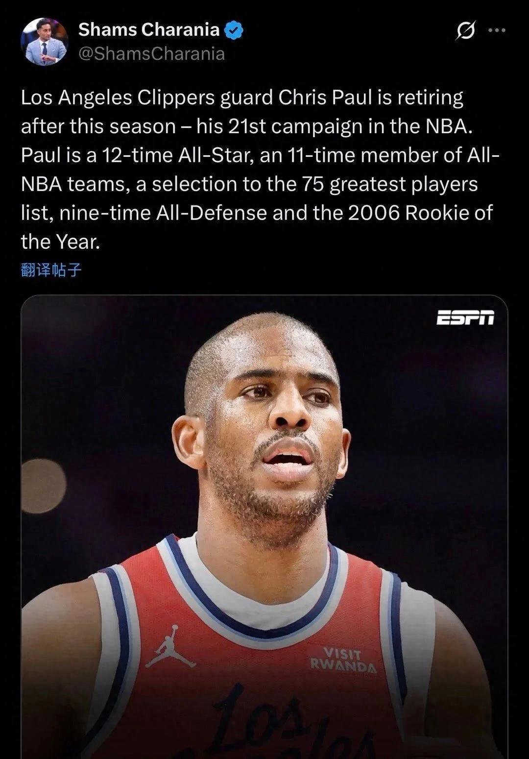 The renowned insider Shams stated,Paul will announce his retirement once this season concludes. Ticketing platforms show that Paul’s final regular season game will be on April 13 next year, when the Clippers host the Warriors, with minimum ticket prices climbing to $129.