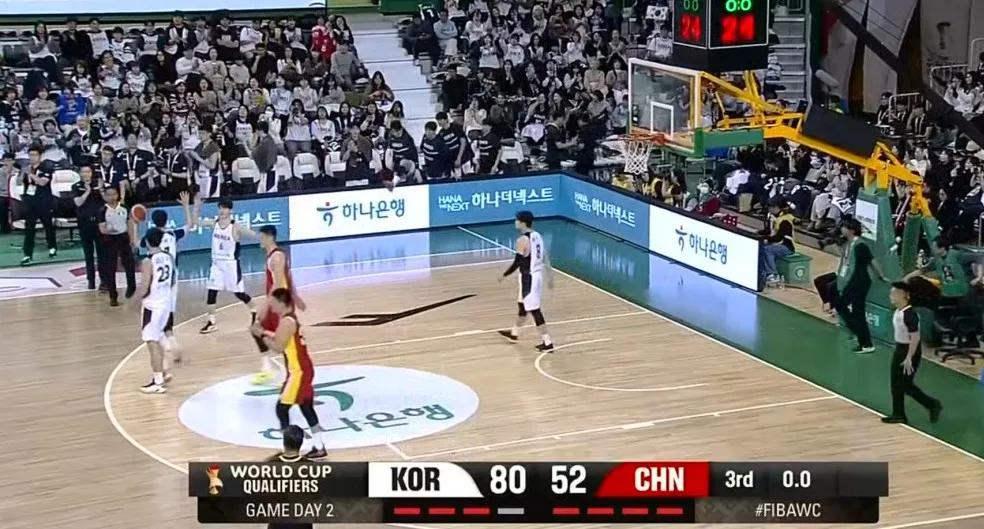 In the second half, led by Cheng Shuaipeng, China’s offense improved somewhat, but they still couldn’t contain South Korea’s firepower, nor overcome the impact of refereeing decisions. After three quarters, the score was 52-80, trailing by a huge 28 points.