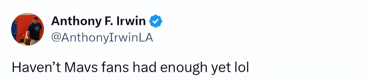 Seeing two former Mavericks players both win Player of the Week honors, reporter Irwin joked that Mavericks fans must be fed up by now.