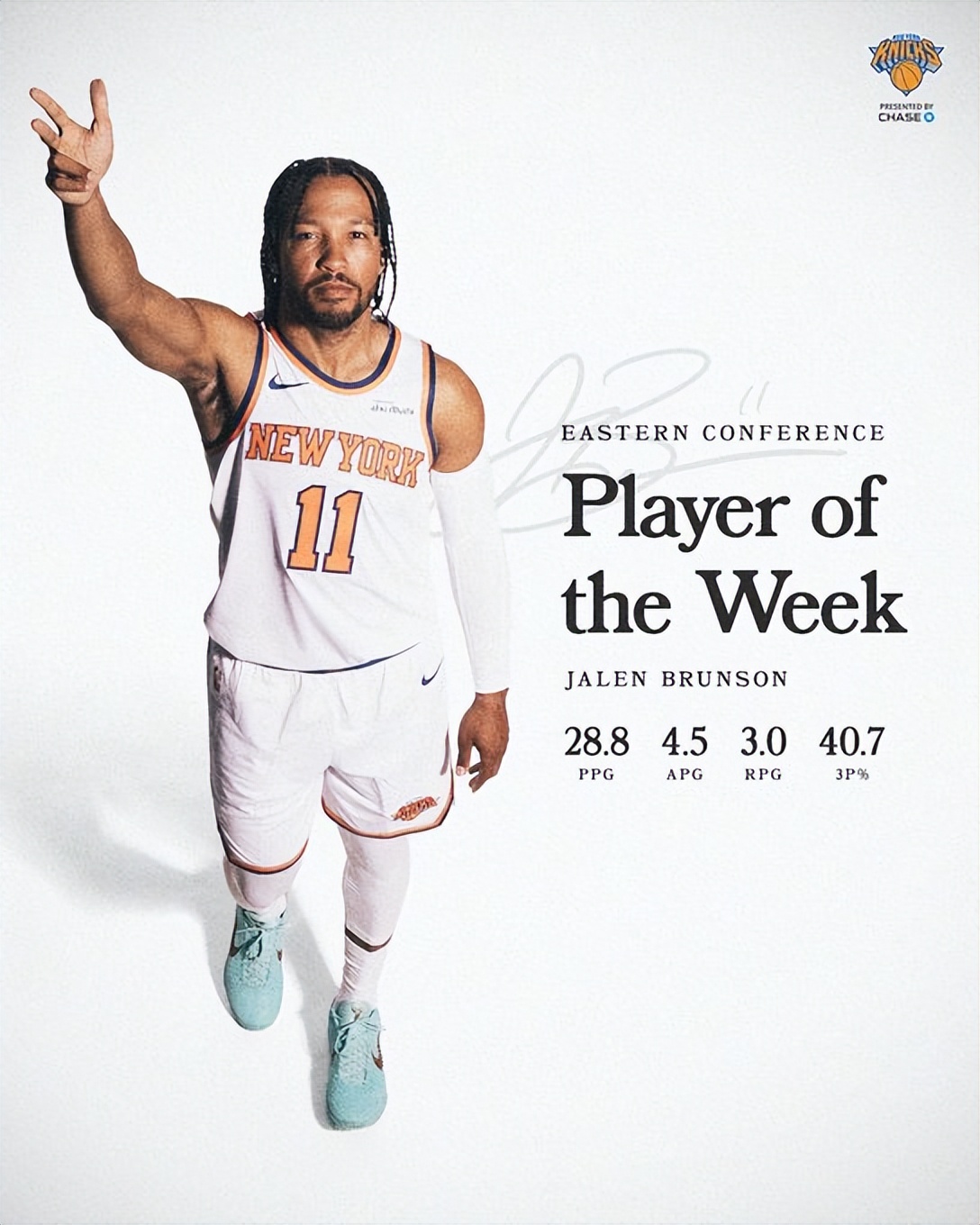 In the last week, Brunson averaged 28.8 points and 4.5 assists with a three-point shooting percentage of 40.7%, helping the Knicks achieve a 4-0 record.