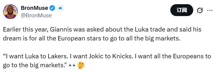 Several teams’ media and fans have already begun courting Giannis.Notably, after deleting much of his Twitter content, his most recent post dates back to 2021, sending birthday wishes to the late Kobe Bryant. Many Lakers media outlets have shared this, speculating it could be Giannis subtly signaling his interest in the Lakers.