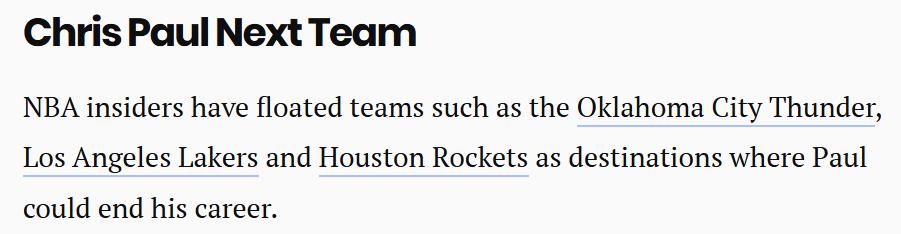NBA insiders have identified several teams that could potentially be the final destination in Paul's career, including the Oklahoma City Thunder, Los Angeles Lakers, and Houston Rockets.