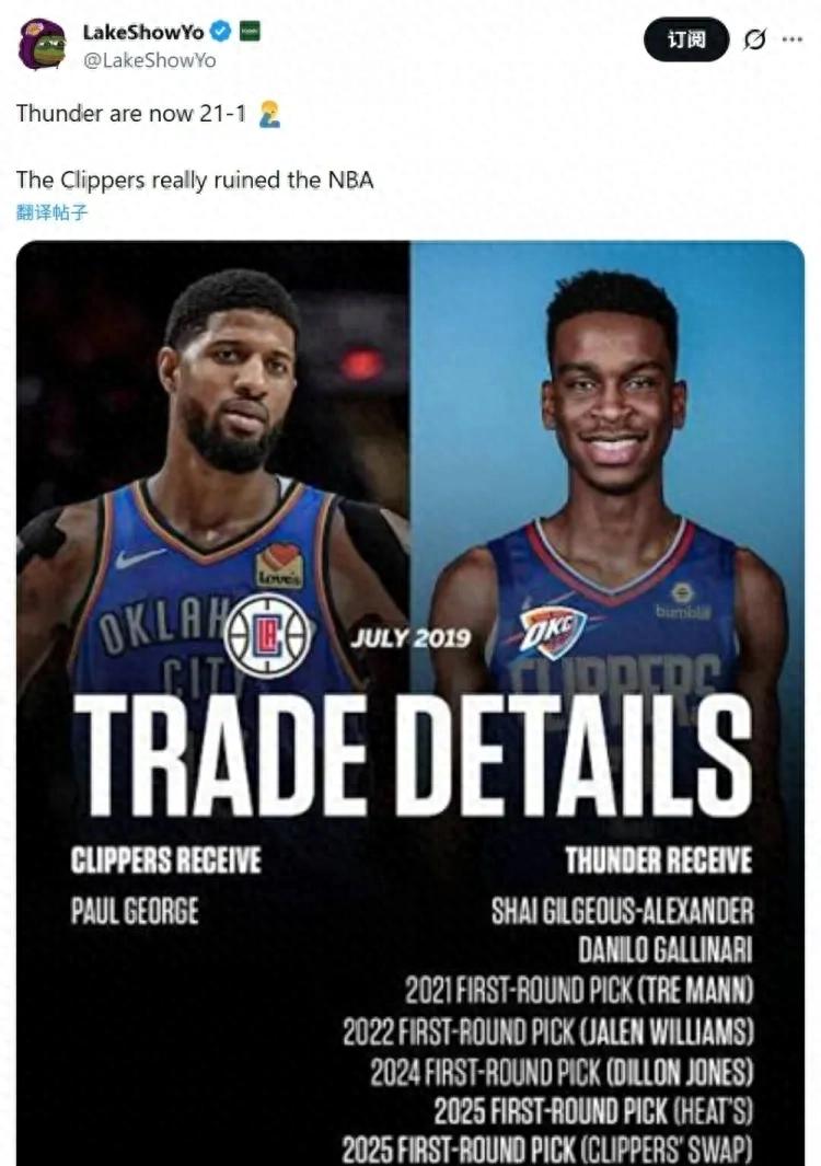 As for the Clippers, they currently stand at 6-16, ranking 13th in the West, and their unprotected first-round pick next year belongs to the Thunder. So after Alexander, the Clippers might even send a number one overall pick to the Thunder.