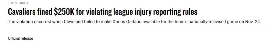 According to the NBA’s official explanation, the violation occurred because All-Star guard Garland could have played in the nationally televised game against the Toronto Raptors on November 25th, but the Cavaliers had him participate in the non-televised game against the Clippers the day before, causing him to miss the nationally broadcast matchup.