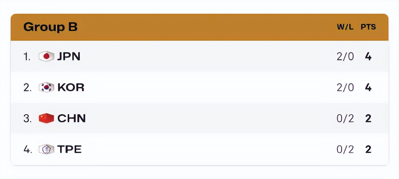 Currently, the Chinese men's basketball team ranks third in Group B, only ahead of Chinese Taipei who also lost both games. Japan leads the group, with South Korea in second place.