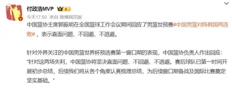 Finally breaking the silence, the spokesperson of the Chinese Basketball Association addressed the two losses (76-80, 76-90) to South Korea in the World Cup Qualifiers as follows: