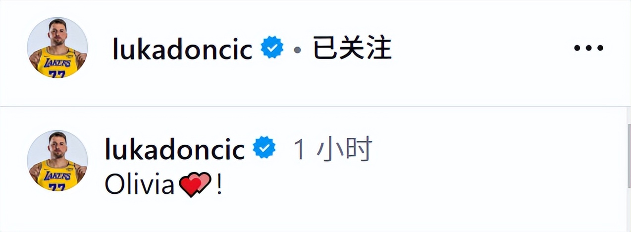 On December 6th Beijing time, Lakers star Luka Dončić announced on social media that his second child—a daughter named Olivia—has been born successfully. ESPN sources disclosed that Dončić had missed the Lakers’ previous two games for "personal reasons" and had traveled back to Ljubljana, Slovenia, to support his fiancée Anamaria Goltes during the delivery.