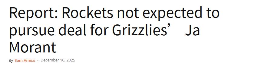 The Rockets finalized a significant acquisition by obtaining Durant this summer, and the team apparently has no intention to act again shortly. As reported by Sam Amick on December 11th Beijing time, the Rockets have no plans to initiate a trade involving the Grizzlies’ standout player Morant.