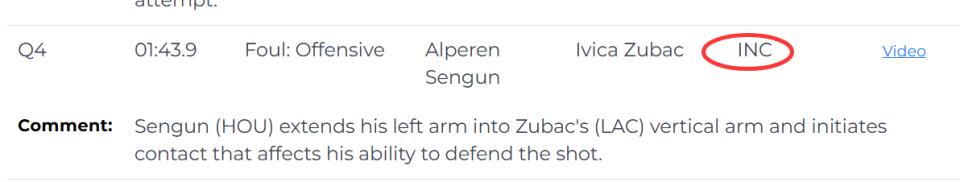 With 14.1 seconds left, Smith Jr. grabbed a rebound and then turned, knocking down Dunn, resulting in an offensive foul. The referee report explained as follows—