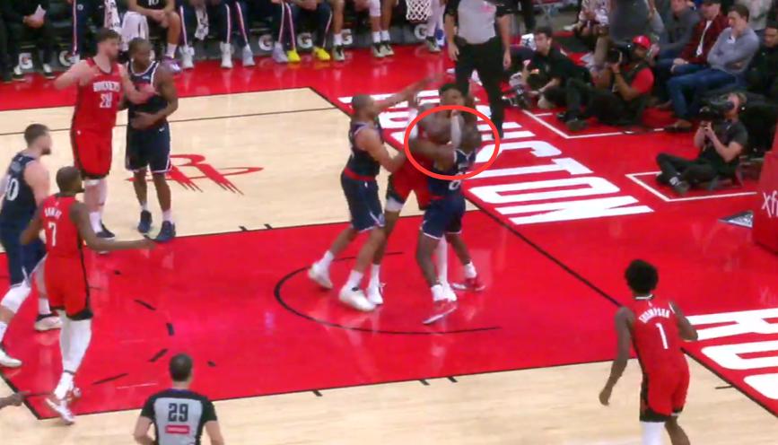 The referee report stated this should have been an offensive foul, nullifying the basket. This missed call clearly disadvantaged the Clippers and benefited the Rockets.
