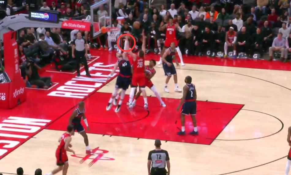The sole missed call in the final two minutes occurred with 1 minute and 43 seconds remaining. At that moment, Rockets’ Sengun extended his left arm onto the vertically raised arm of Clippers’ Zubac, initiating contact that affected Zubac’s defensive shot attempt. After Sengun scored, Zubac signaled a foul to the referees, but they did not respond.