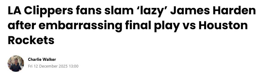 On December 13th Beijing time, the Clippers suffered a close 113-115 defeat to the Rockets. Harden’s actions in the closing moments drew widespread attention. Clippers fans criticized him for appearing sluggish, and a Rockets reporter bluntly said he hopes Harden does not return to Houston because he tends to crumble under pressure.