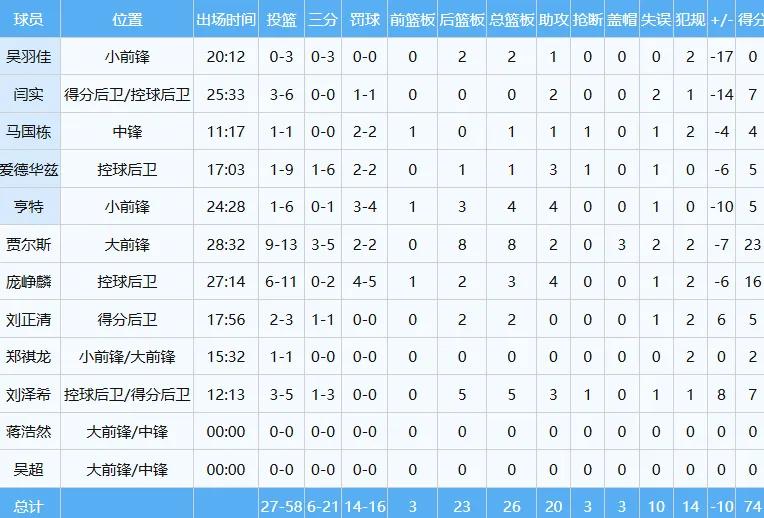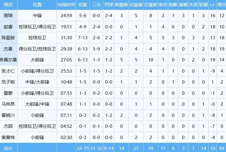 The domestic big three—Zhou Qi, Zhao Rui, and Chen Yingjun—combined for 40 points, 14 rebounds, and 11 assists. Here are Beijing’s stats: