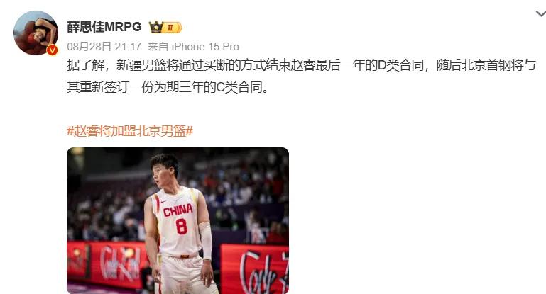 During this summer’s off-season, Zhao Rui reached a category D max buyout agreement with Xinjiang team, then promptly signed a three-year category C contract with Beijing team, starting a new chapter in his career.