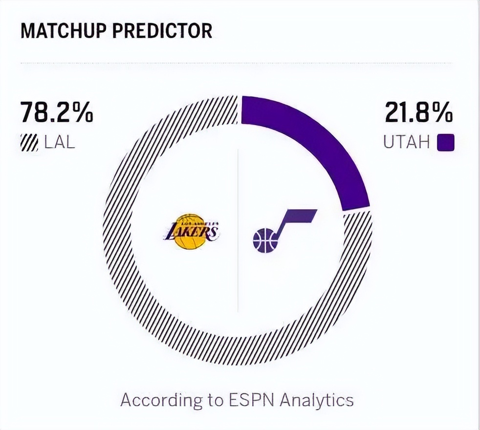 Next up, the Lakers will face the Jazz on the road. ESPN predicts a 78.2% chance of victory for the Purple and Gold, making this a must-win game.