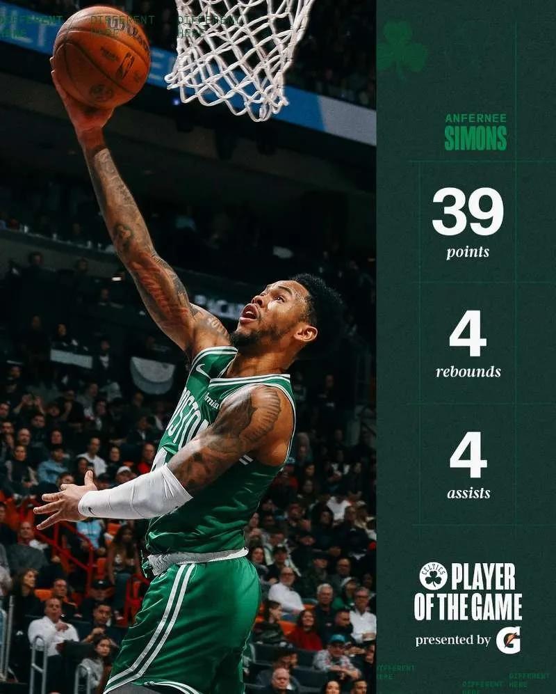 Besides that, newcomer Anfernee Simons has been outstanding, heading straight for the Sixth Man of the Year award,appearing in all 40 games off the bench this season, averaging 24.3 minutes, contributing 14.1 points, 2.4 rebounds, and 2.6 assists, shooting 40.5% and hitting 2.7 three-pointers per game.He is currently the Celtics’ most crucial second-unit scoring option.