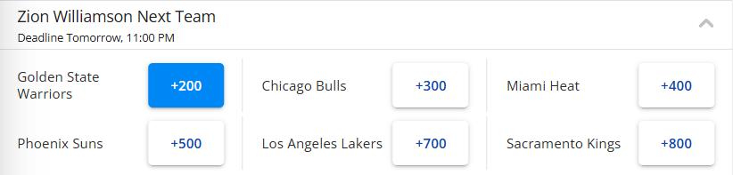 On January 18th Beijing time, the latest odds for Zion's next team were released, with the Warriors leading the list as the top favorite destination for the Pelicans star. The current top six odds for Zion's next team are Warriors, Bulls, Heat, Suns, Lakers, and Kings, respectively. Following this, US reporter James Piercey shared a 4-for-1 trade plan, calling it a win-win deal.