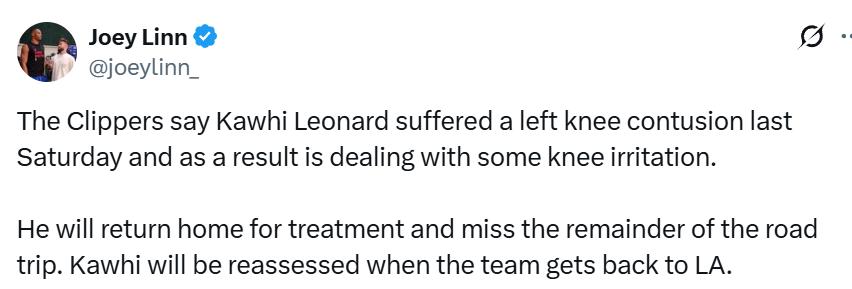 It should be noted that the discomfort in his left knee is not the same one that has undergone multiple surgeries previously.Leonard had missed the entire first half of the 2024-25 season due to his previous knee injury.