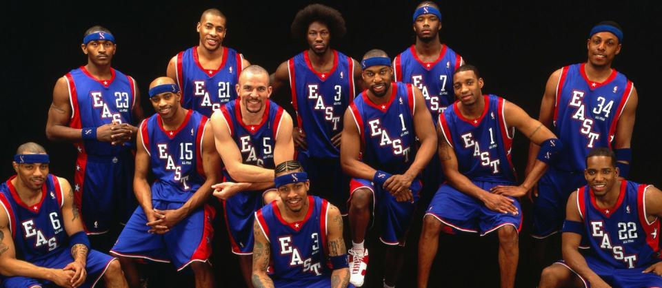 LeBron’s rookie season was with the Cleveland Cavaliers. At that time, the Eastern Conference All-Star starters were Iverson, McGrady, Carter, Ben Wallace, and Jermaine O’Neal. The Western starters included Francis, Kobe, Garnett, Tim Duncan, and Yao Ming — a truly star-studded lineup.