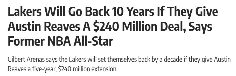 "To be frank, Austin Reeves is the Lakers' future lifeline, meaning he is a highly valuable asset that other teams would desperately want," Arenas further explained.