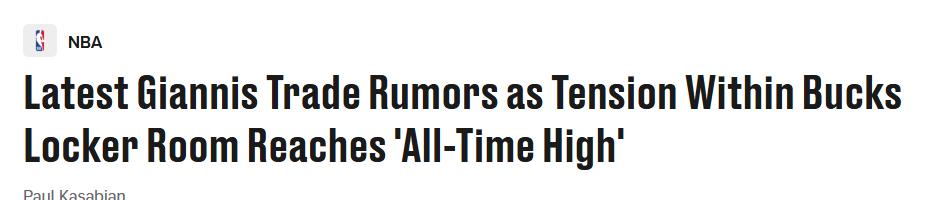 “Giannis's frustration has hit the highest point . He is annoyed by the team's defeats and disturbed by the current circumstances. I can say that over the past few weeks, I have intermittently interviewed more than ten sources, and the tension within the Bucks organization and locker room has truly risen to historic highs, with clear signs thatthere are emerging signs of division within the team . The reason is simple: when a star player of Giannis's caliber is restless or uncertain about his future with the team and is engaged in intense discussions with management about the direction ahead, the entire team inevitably becomes shrouded in great uncertainty.”