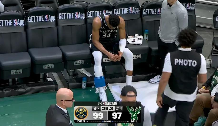 According to Shams's report after the game, Giannis personally told the media that he injured his calf, will undergo an MRI tomorrow, and is expected to be out for 4 to 6 weeks. This season, Giannis has had recurring minor calf injuries, resting a few games before returning repeatedly, which carries significant risk if continued.
