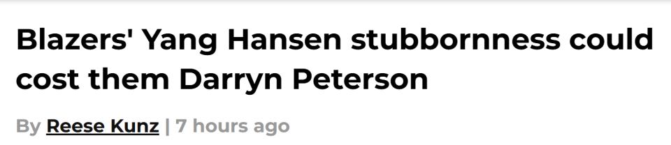 On January 25th Beijing time, Portland journalist Reese Kunz stated that the Trail Blazers' fixation on Yang Hanseng may have led them to lose the chance to acquire Darlan Peterson, a favorite for the 2026 top draft pick. Below is his article—
