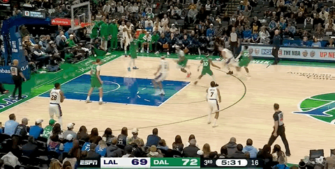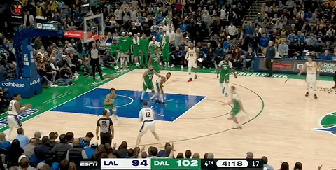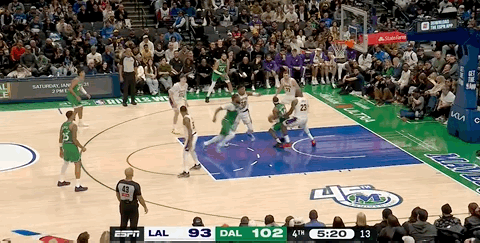 Smart made two free throws, LeBron had a steal and dunk, forcing a Mavericks timeout