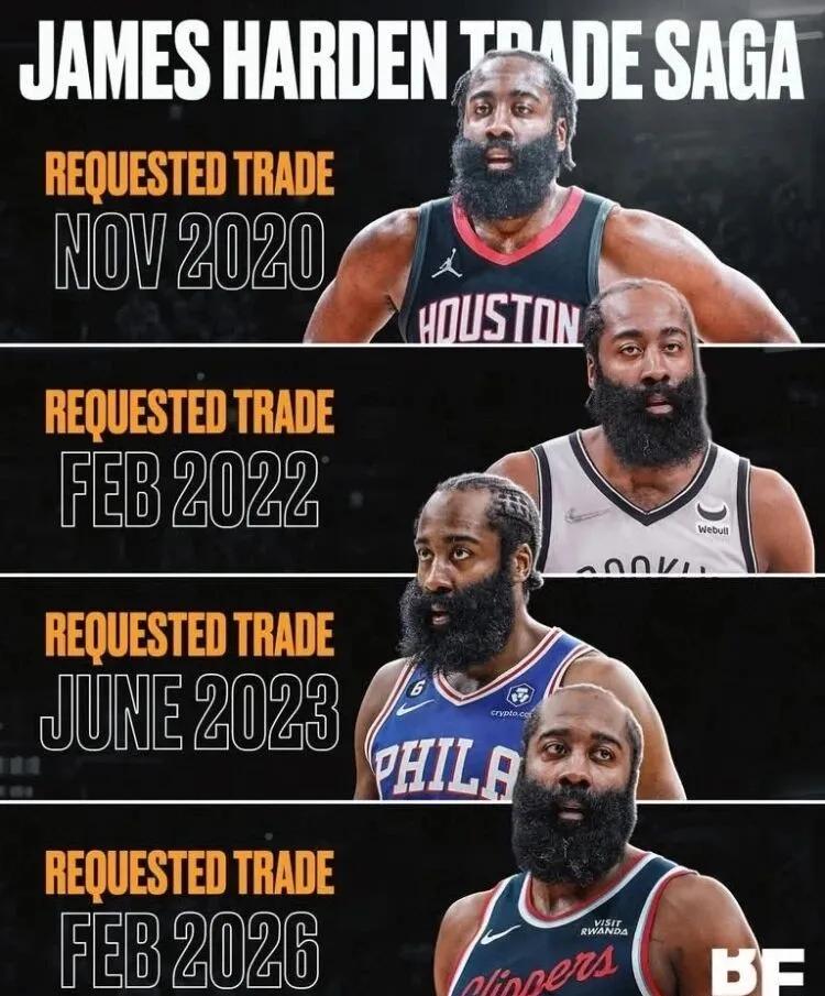 This season, 36-year-old Harden has appeared in 44 games, averaging 35.4 minutes per game, contributing 25.4 points, 4.8 rebounds, 8.1 assists, and 1.3 steals, with shooting percentages of 41.9%, 34.7%, and 90.1%. His current contract runs through summer 2027, and he holds a player option this summer allowing him to decline and become a free agent early.