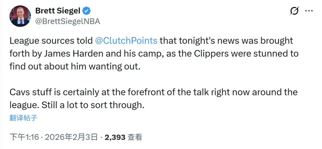 Journalist Siegel states that Harden initiated the trade request; the Clippers were surprised but consented.