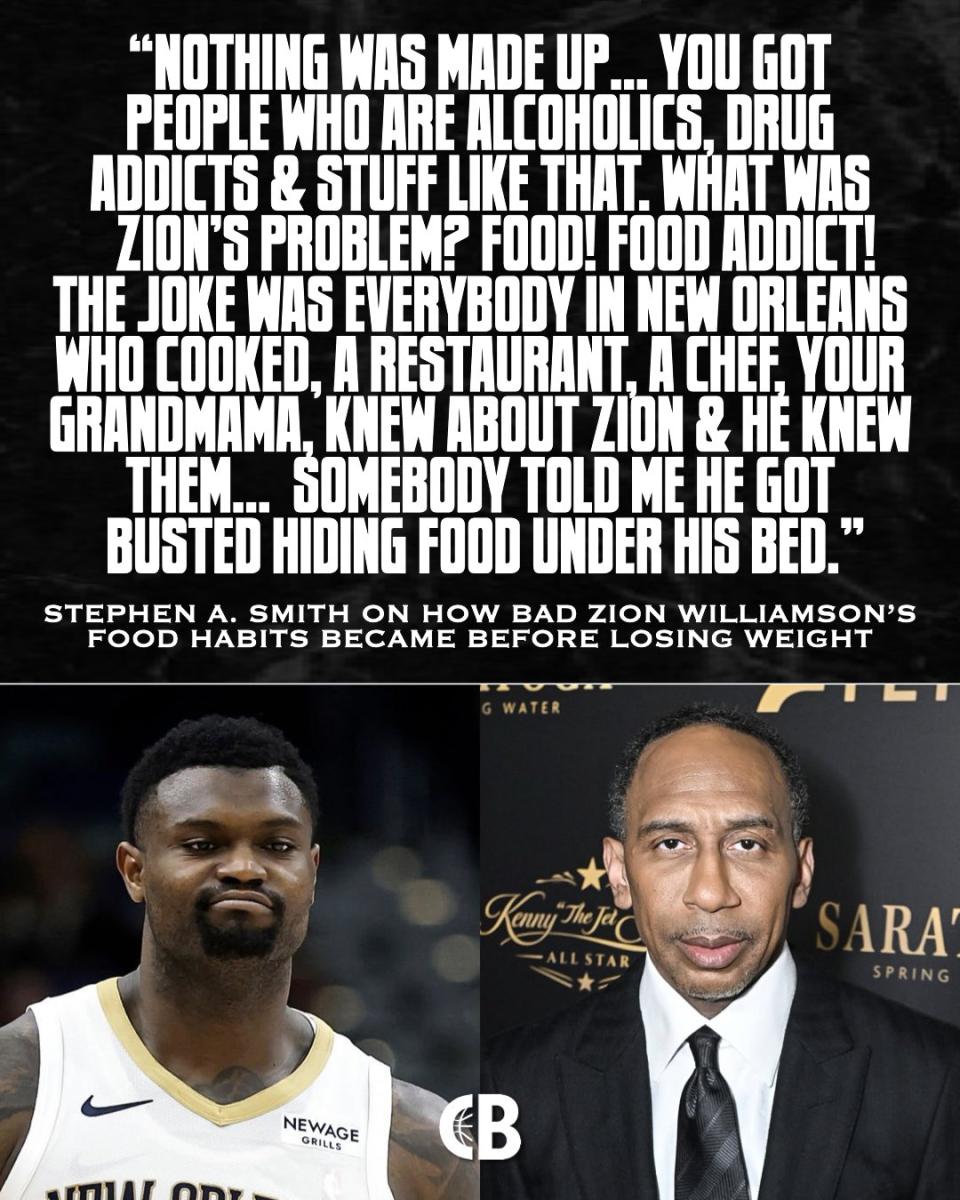 A. Smith's original comment was: "I didn't make anything up... You know about people with alcoholism, drug addiction. What's Zion's issue? Food! He's a food addict! The joke is, everyone in New Orleans who cooks — restaurants, chefs, your grandma — they all know Zion, and he knows them... Someone told me he was caught hiding food under his bed."