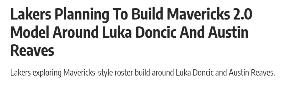 "The Lakers genuinely want to create a 'Mavericks 2.0.' They believe a backcourt core of Dončić and Reaves has a chance to succeed. Although this duo has defensive weaknesses, the Lakers are confident that with the right supporting cast of role players in the frontcourt, these two can lead the team to wins. Therefore, this offseason, the Lakers' focus is to find players corresponding to those Mavericks roles."