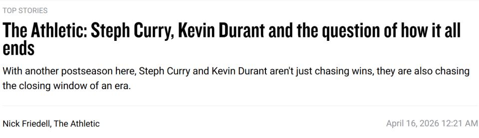 For Curry and Durant, the start of the new season's playoffs isn't just a fresh chance to compete at the highest level; it also reminds them how remarkable it is that they've stood in the league for so many years and still maintain elite form.