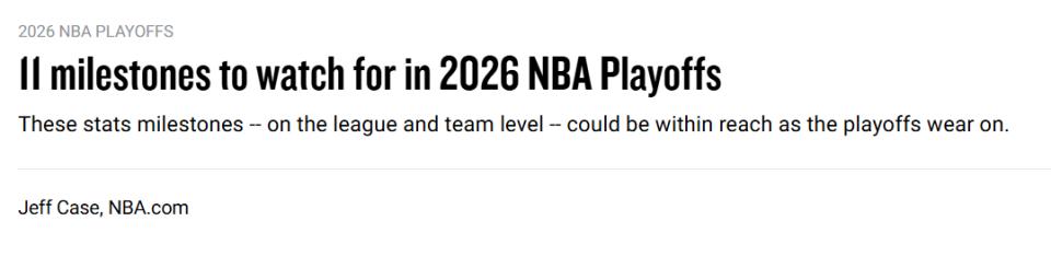 On April 18 Beijing time, the 2025-26 regular season has officially concluded, the play-in tournament ends today, and the 2026 NBA playoffs are ready to begin. This season saw many career milestones, and as the playoff curtain rises, a large number of historical records are poised to be rewritten. Here are some key individual milestones—