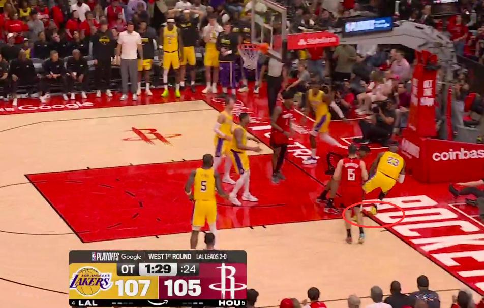 The second missed call occurred with 1 minute and 29 seconds left in overtime. The referee report pointed out that LeBron James secured the ball while scrambling with a Rockets player, but his foot was already out of bounds, and the referees did not whistle. Although theoretically this benefited the Lakers, LeBron saved the ball back, and the Rockets regained possession. The impact of this missed call was less obvious on the game compared to the previous one.