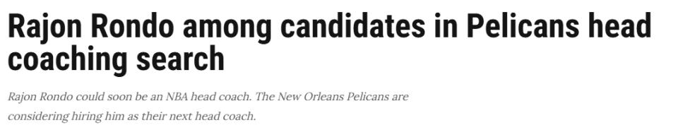 Stein stated: "League sources indicate that Spurs assistant coach Sean Sweeney and former All-Star guard Rajon Rondo have both entered the selection list for the Pelicans' head coach position."