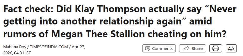 However, this so-called "solid evidence clip" circulating online is actually an old livestream recording from Clay in 2024, where he was only discussing topics related to leaving the Golden State Warriors on an Instagram live.Many fans quickly debunked the false news, but some netizens still believed it, mistakenly thinking Clay publicly complained about being betrayed by Megan.