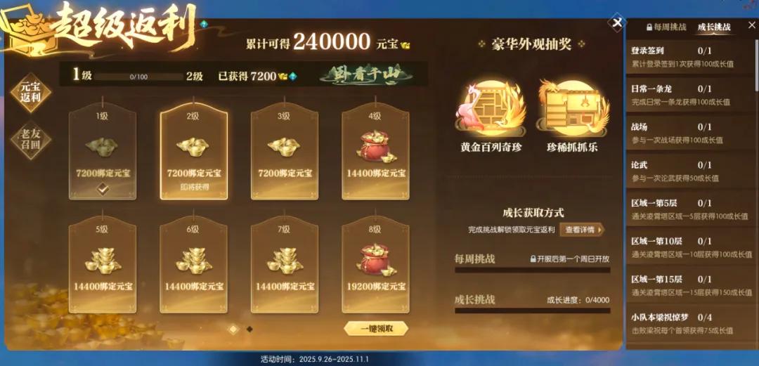 These bound ingots can be used in the Hundred Treasures lottery, where players can obtain rare appearances, hairstyles, and auspicious mounts, among other things, plus a wish list and a guaranteed minimum reward system. Considering the large amount of rebate ingots, players can enjoy extensive lottery draws and fully indulge in a “luxurious” gaming experience.