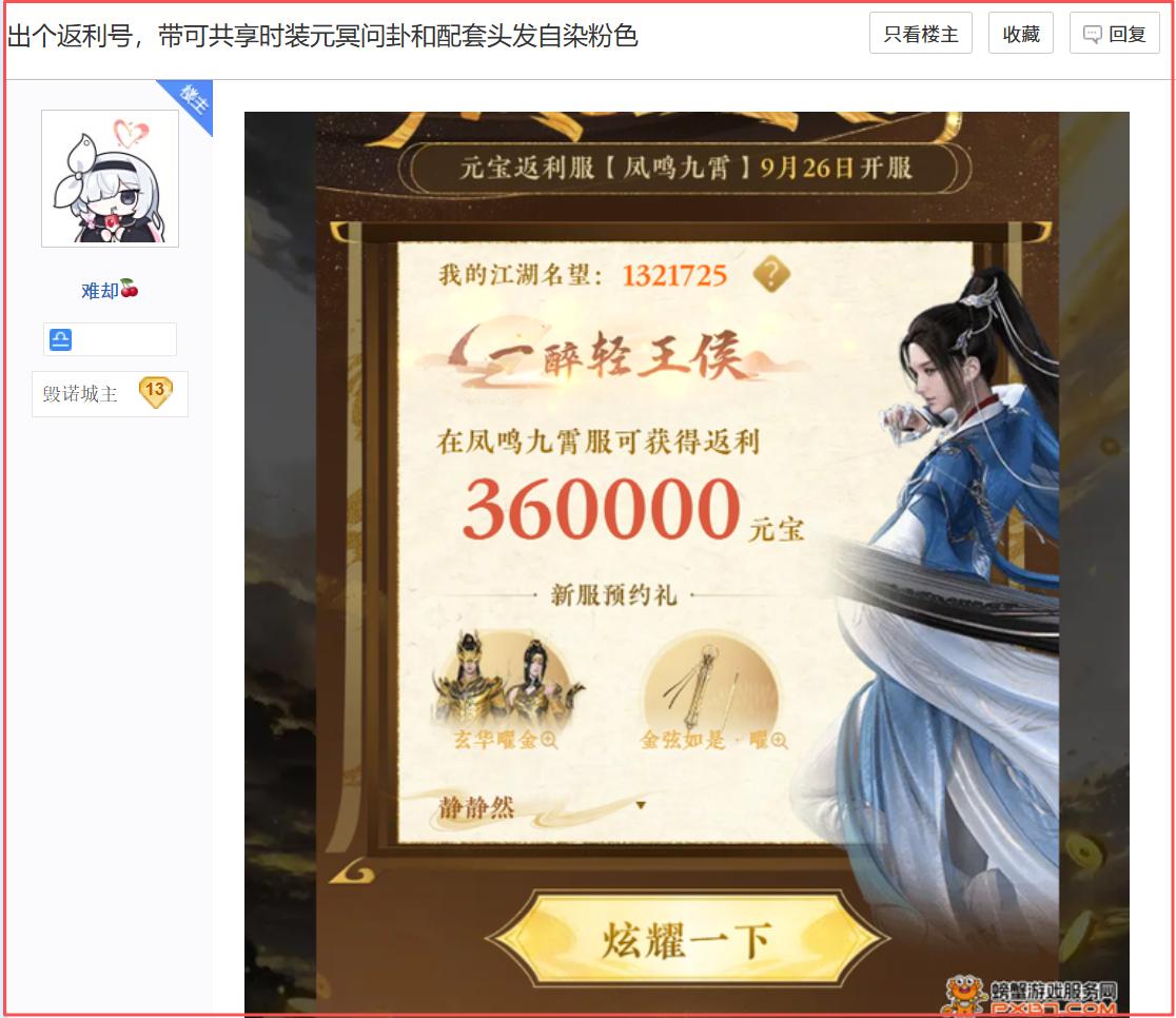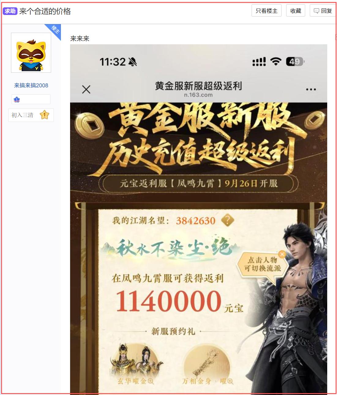 The new Gold Server was already highly attractive to players, and combined with the historical recharge super rebate event, it became irresistible. Consequently, after the announcement of the “Phoenix Soaring Nine Skies” server, many players eager to join started hunting for old accounts with long histories and high rebate amounts to better start their new server experience. The overwhelming demand caused the prices of old “Justice Online” accounts to soar, with many accounts doubling in value.