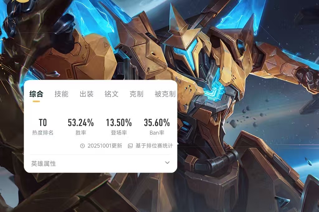 So why has Mozi stood out among many supports this new season? Let’s look at his stats. Across all ranks, Mozi’s win rate has reached 53.1%, the highest among all supports. Meanwhile, his pick rate is 13.5%, exceeding 10%, meaning Mozi has become a very popular support hero in games. What’s more surprising is his ban rate, which is 37.8%, also quite high—roughly 4 out of 10 games see him banned. However, compared to Shield Mountain who is almost never available, this is still quite good.