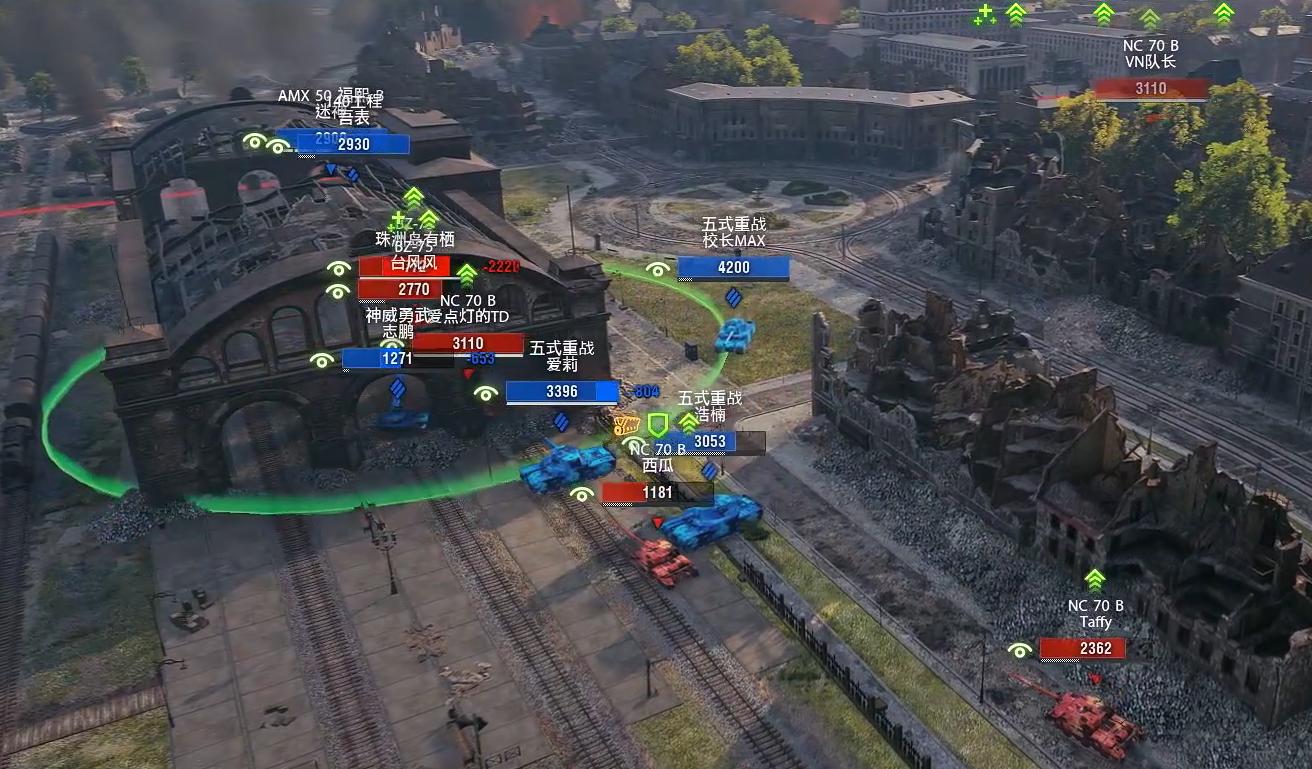 In the following fourth match, the battle continued in Silmersdorf. Team A imitated 2072’s previous setup with double BZ-75s and triple NC-70Bs. However, 2072 chose to lie in wait at the train station, baiting Team A and using the tough and powerful Type 5 heavy tank to cut off the connection between the waiting hall and tracks, splitting and surrounding Team A’s main force, then successfully annihilating them.