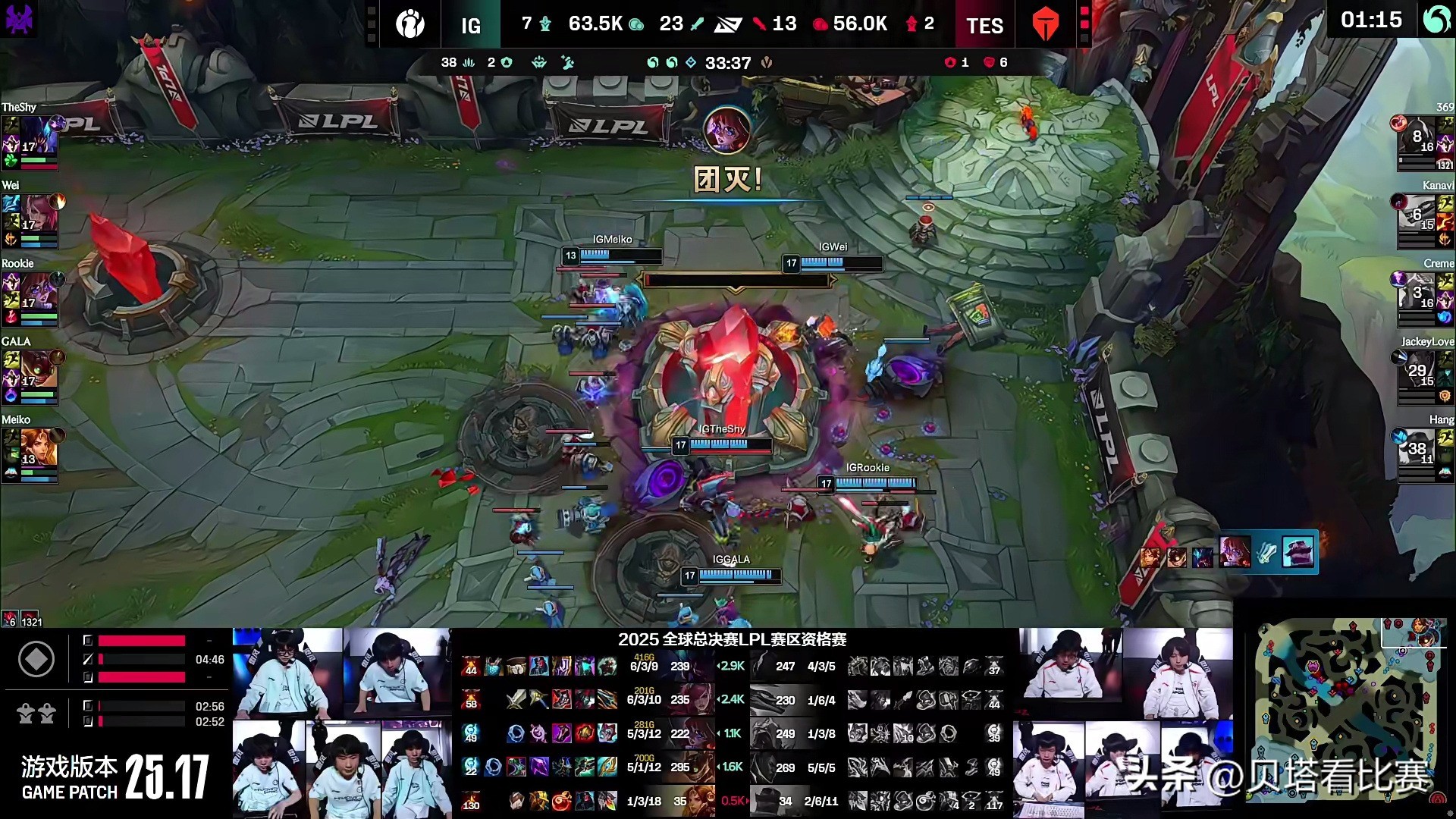 In the mid-game fight for Elder Dragon, IG claimed it, and TheShy’s Dr. Mundo flanked to directly attack JKL’s Lucian. IG managed a 4-for-2 team fight win. Later at 32 minutes, Wei’s Vi flanked and, with teammates, quickly eliminated JKL’s Lucian. IG then went for Baron; TES attempted to stop them, but IG engaged, with TheShy’s Viktor diving Creme’s Viktor, leading to a team wipe of TES and IG securing the match victory.