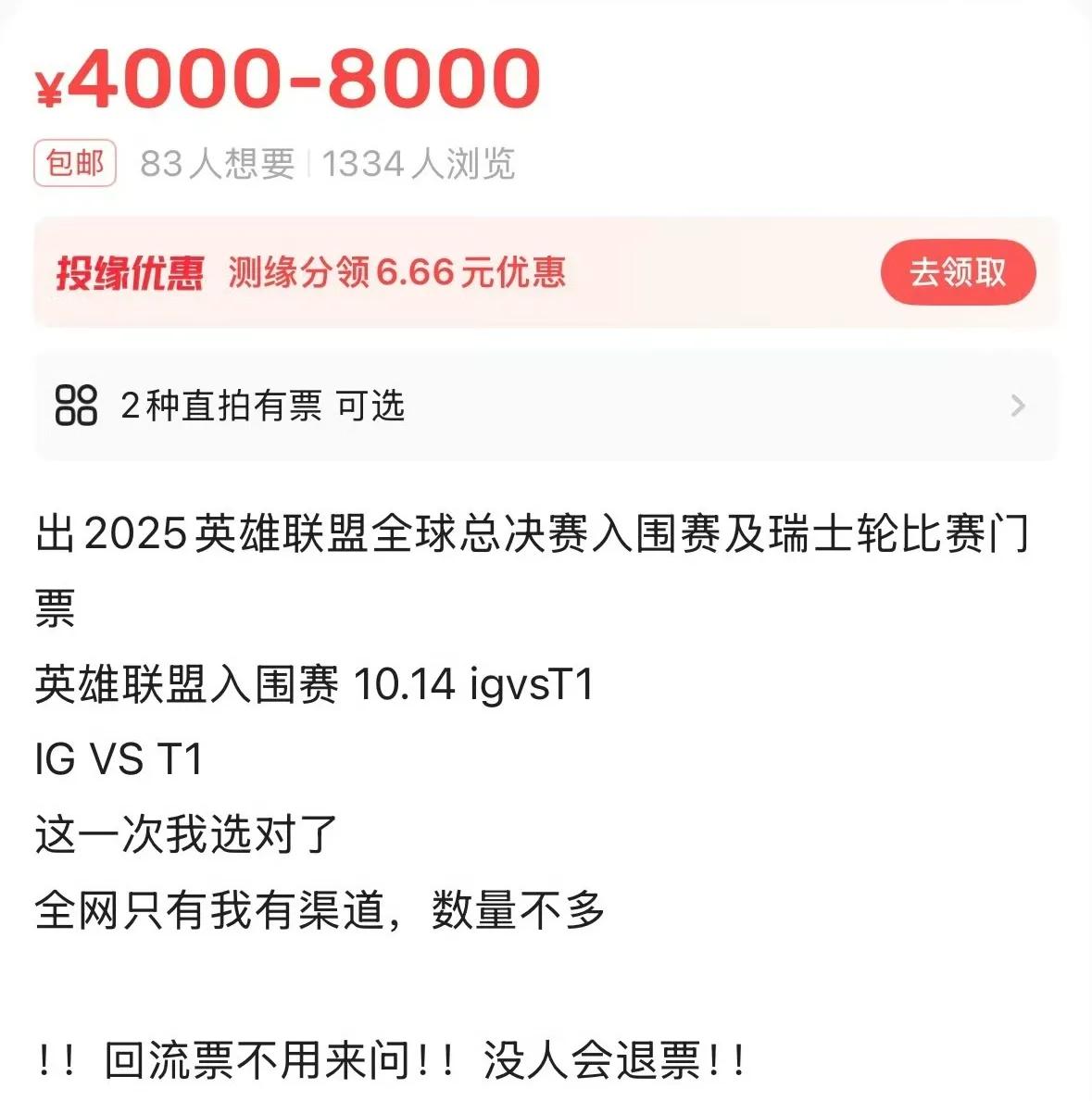 First, let’s look at the current ticket prices. Tickets originally priced at 388 yuan now sell for around 4,000 yuan. Due to real-name verification, some even send ID documents by mail. Additionally, some have shared invitations for the League of Legends World Championship qualifying matches, which are free anonymous tickets. After scanning the QR code, attendees must register with real names before entering. These tickets are highly sought after, with prices ranging from 4,000 to 8,000 yuan and still climbing. If nothing unexpected happens, ticket prices could surpass 10,000 yuan. It remains uncertain if the organizers will change the venue, as the 2,000-seat small arena cannot accommodate so many fans.
