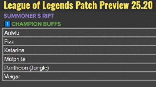 The League of Legends 2025 World Championship will be played on patch 25.20. Recently, Riot’s official designers revealed the list of champion changes: Anivia, Fizz, Katarina, Malphite, Pantheon, and Veigar all received various buffs (exact numbers not yet disclosed), while Bel'Veth, Orianna, Volibear, Warwick, and Wukong were nerfed. Overall, the champion adjustments are relatively moderate.