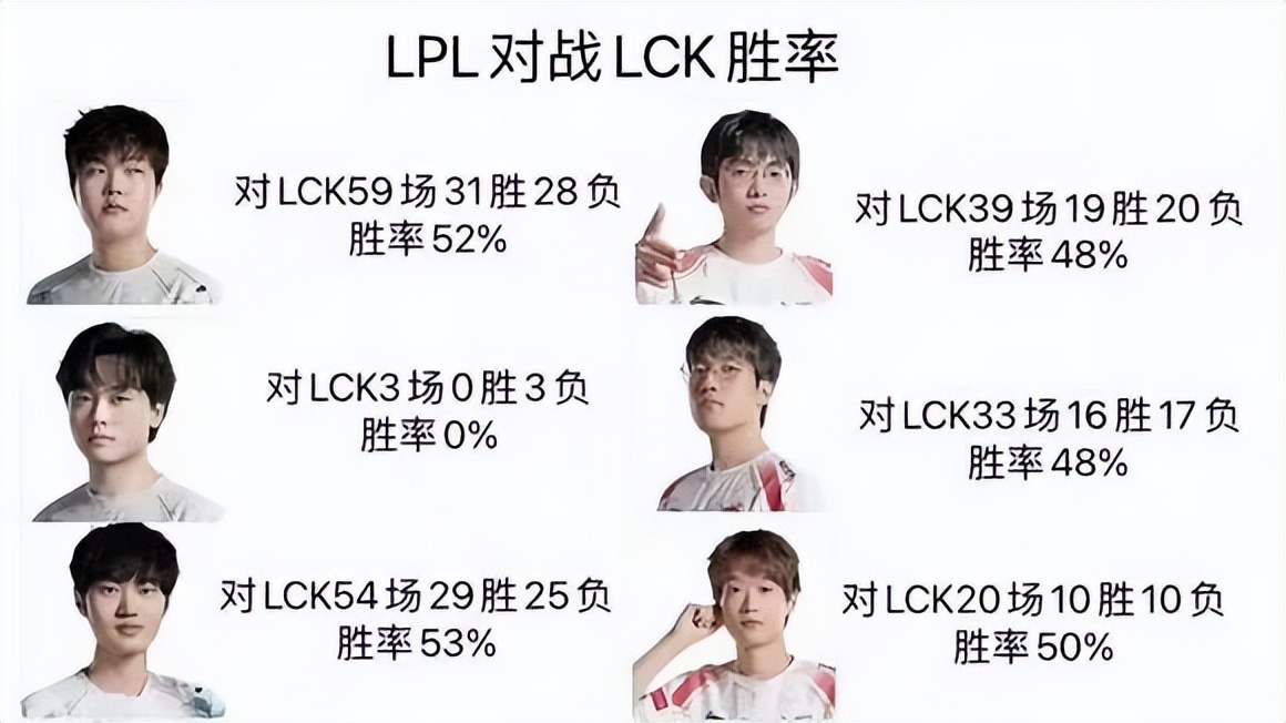 The biggest obstacle for LPL’s championship this year is still the LCK region. Recently, a netizen compiled statistics on the career win rates of players from the four LPL World Championship teams against LCK teams. Leftshark leads with a 29-25 record, a 53% win rate. Behind Knight are Bin and GALA, both with about 52%. Most other players fall between 40% and 50%.