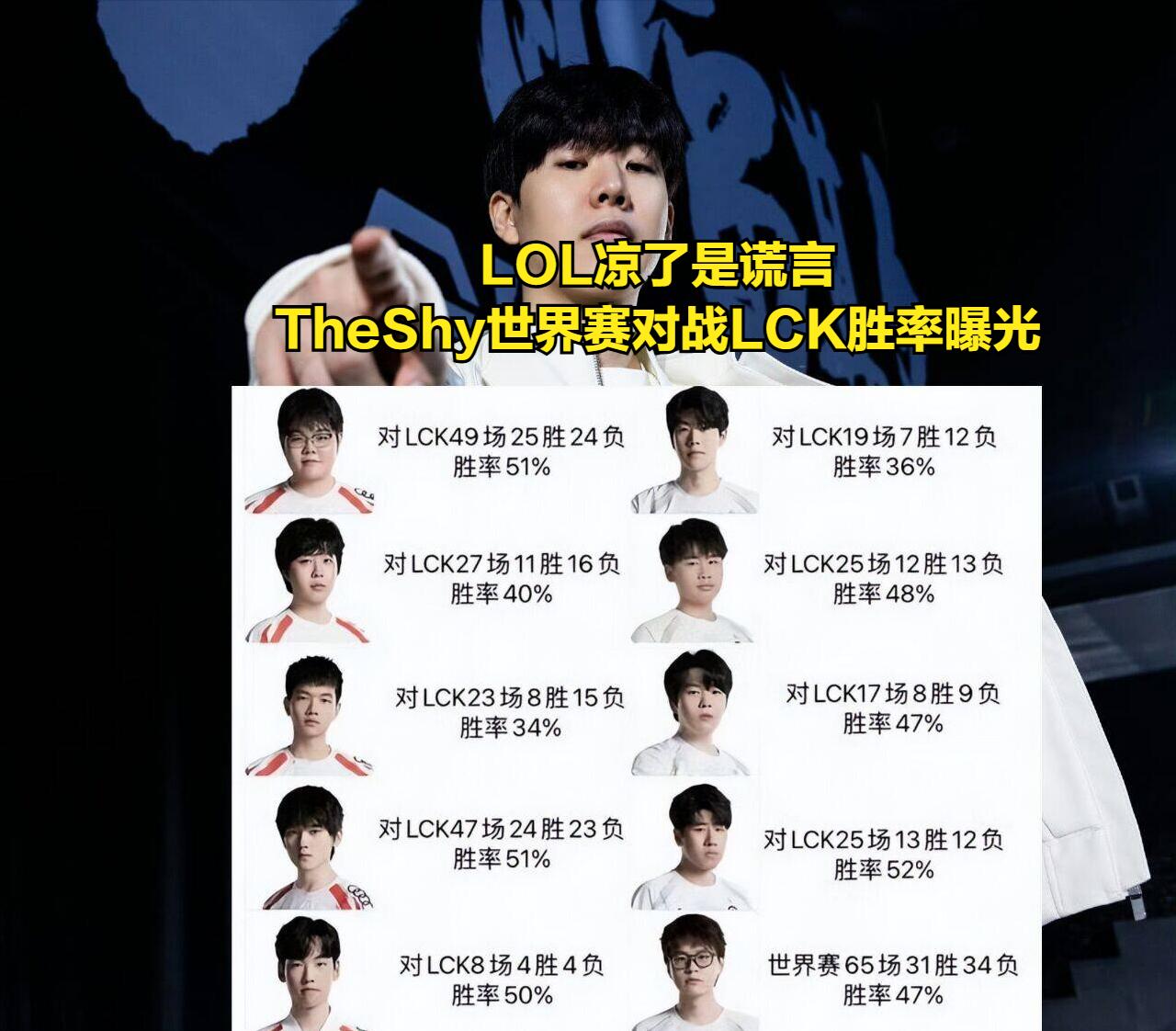 As the LOL World Championship approaches, the win rates of LPL teams against LCK are gradually coming to light. Among them, the five IG players’ records against LCK have many LPL fans worried. Only GALA holds a winning rate above 50% against LCK teams. ROOKIE has a 47% win rate with 8 wins and 9 losses in 17 matches, TheShy stands at 36% with 7 wins and 12 losses over 19 games, WEI holds 48% with 12 wins and 13 losses in 25 matches, and Meiko has a 47% win rate with 31 wins and 34 losses across 65 games.